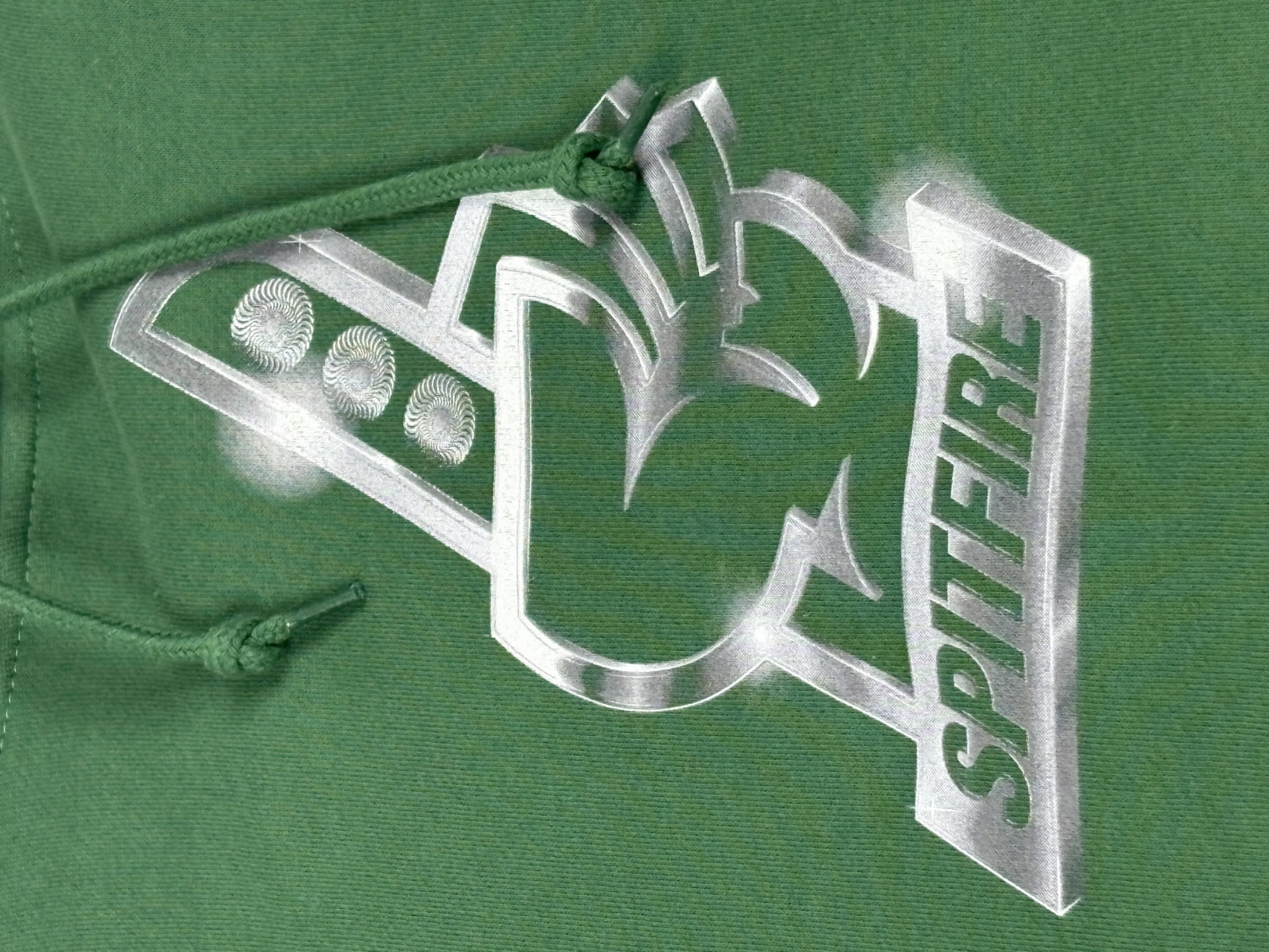 Posiada klasyczny krój, regulowany kaptur i dużą kieszeń typu kangurka. Na froncie znajduje się efektowny nadruk z logo Spitfire Wheels w metaliczno-chromowym wykończeniu – symbol prawdziwego ducha skate kultury.